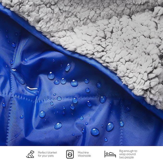 EverSnug Sherpa Waterproof Camping Blanket - Extra Thick and Warm, Large Sherpa Fleece Outdoor Blanket for Camping, Picnics, Beaches, Stadiums, Pets - Washable and Windproof for Cold Weather (Blue)