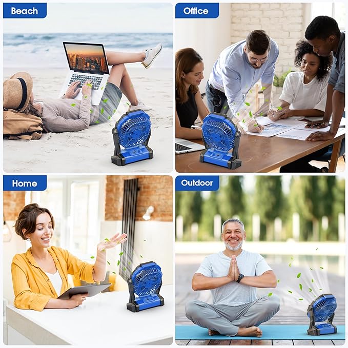 - Strong Wind & Quiet Design for Battery Powered Fans: This portable fan comes with 4 adjustable wind speeds to meet different needs and keep you cool at home or for travel like camping. The brushless motor and upgraded fan blades operate efficiently with minimum noise, and you will have a calm and peaceful experience thanks to its noise level of ≤ 30Db