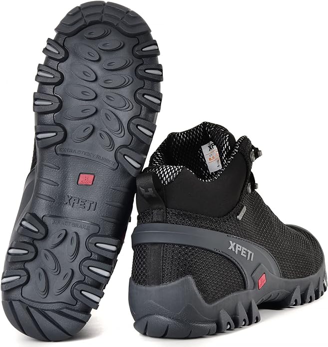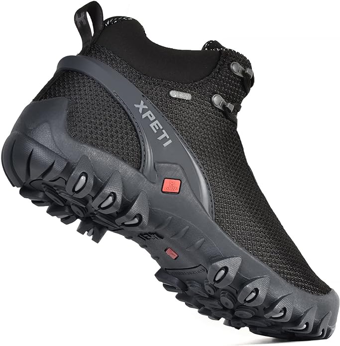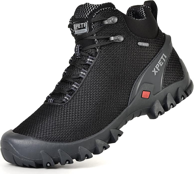 - WATERPROOF -- The men waterproof hiking boots are made of Abrasion resistance Kevlon fabric upper. XPETI-Dry Membrane waterproof and moisture-wicking mesh lining.Moisture-wicking mesh lining. keeps your feet dry and comfortable all day.