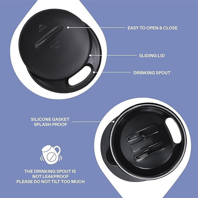 - Special Feature : Condensation Resistant, Double Wall, Sliding Lid, Spill Proof, Vacuum Insulated