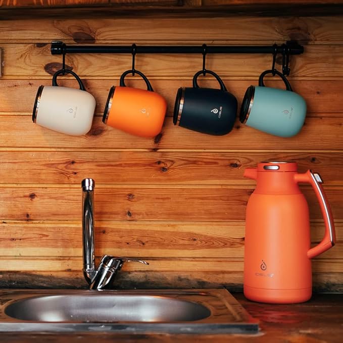 - 【STYLISH AND DURABLE】- The thermal cup is dishwasher safe and has a No Sweat Design to make sure your hands stay dry. The tough powder coating on the colored tumblers won’t fade, peel, or crack through extended field use.