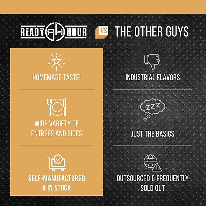 - TASTES GREAT: Ready Hour freeze-dried food is designed for emergencies but tasty enough for everyday use.