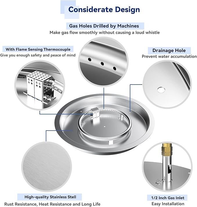 - Convert to Natural Gas Conveniently --- If you are planning to use this burner with natural gas, make sure to work with our 50k BTU CSA Certified Natural Gas Conversion Kit (Asin: B09T2XKN9G). We recommend 30 lb. of fire glass for this drop-in burner pan kit (glass not included).