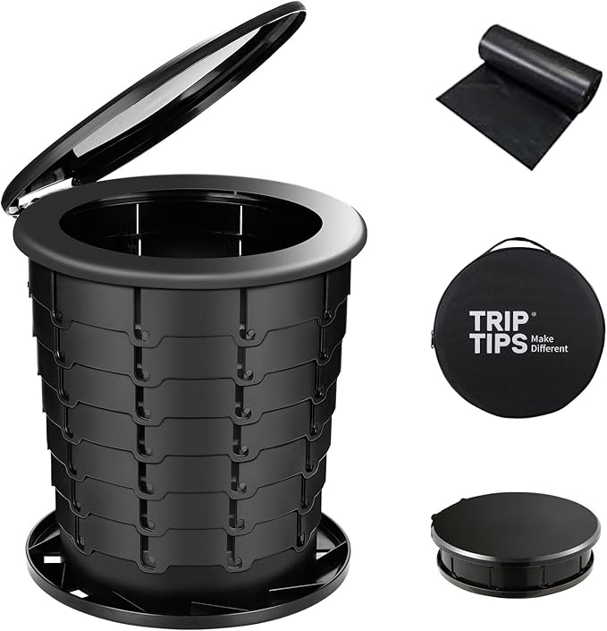 - 【HEIGHT ADJUSTABLE】Are you looking for a portable toilet that cater to everyone's needs at all times? TRIPTIPS retractable portable toilet is designed with innovative fish scale structure, by which you could freely adjust any height you want from 3.2 inches to 13 inches within 8 steps. Whether elderly or children, men or women, can always find a comfortable height for themself.