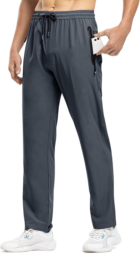 TBMPOY Men's Lightweight Hiking Travel Pants Breathable Athletic Fishing Active Joggers Zipper Pockets
