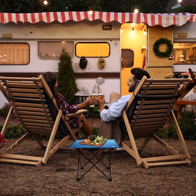 - Ultra-light for Easy Portability: Our folding camp table's top and frame are all made of aluminum, so it's lighter than another comparably-sized wooden camp table, only 2.05 lbs, light enough to carry anywhere. Folds into the included carry bag. This small foldable table can easily fit in the back of a car, RV, motorcycle, or backpack