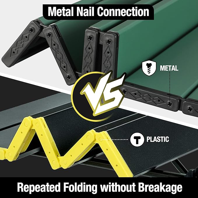 - Hinged Connection Upgrade: VILLEY camp table has a unique metal screw design that works with hinges to connect each panel of the table, unlike other similar foldable tables that are connected with bungee cords or plastic nails, heavy-duty metal nail attached hinges make the snack table more stable and durable, allow it to last for many years