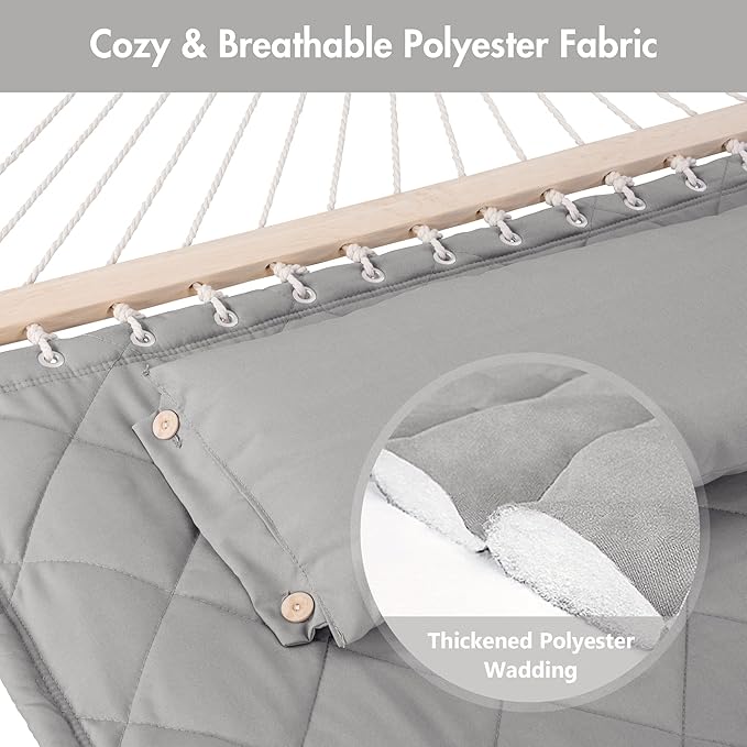 ANOW Double Hammock with Stand 12FT, Heavy Duty Hammocks with Stand for Outdoors, 450 LBS Weight Capacity, Light Gray