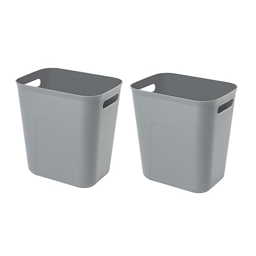 UUJOLY Plastic Trash Can Wastebasket, Garbage Container Basket for Bathrooms, Kitchens, Offices, Kids Rooms, Grey, 3.5 Gallon, 2 Pack