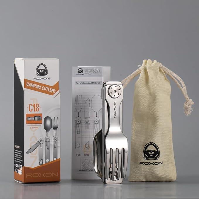 ROXON C1 3 IN 1 Camping Utensils Detachable Cutlery Knife Spoon Fork for Outdoor Camping Hiking