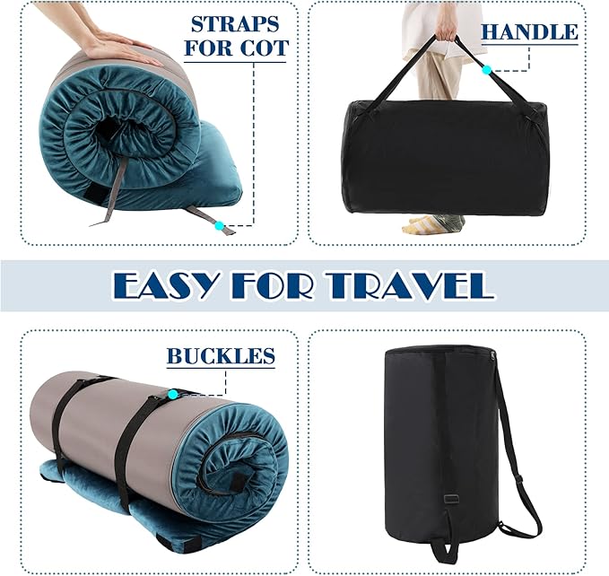 - MACHINE-WASHABLE SLEEPING PAD FOAM: This camping sleeping mat is machine washable because the cover can be detached, so it is easy to clean up. You can connect the folding mattresses for camping together to make a bigger bed with Touch Fastener on each side of them. In addition, the outdoor camping mat comes with two straps that make it portable