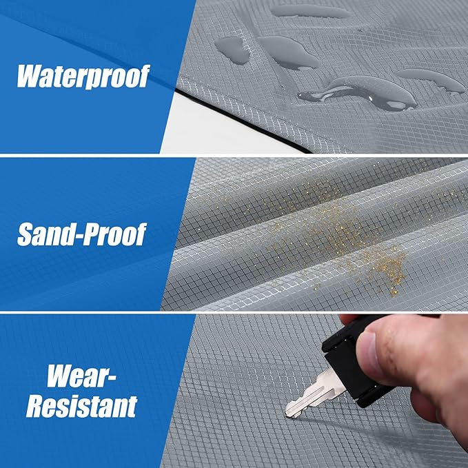 - 【Durable and Waterproof】: Made of nano-grade nylon cloth with the surface is coated with a heat resistant coating, the membrane surface can be used to isolate water droplets. The tight textile structure guarantees the isolation of all fine sand and water. keeping the top surface comfortable and dry when used on damp grass or beach.