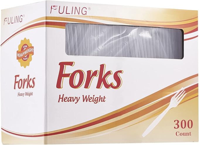 - Convenient Packaging Box - 300 Pack disposable plastic clear forks are packed in high-quality cardboard boxes, with convenient open-close tab for easy use and storage and small Windows to see what's inside at a glance. Have it open and take the cutlery you need, or close it and conveniently store/stack it. It is convenient to know the amount of plastic cutlery left when you start to use these cutleries.