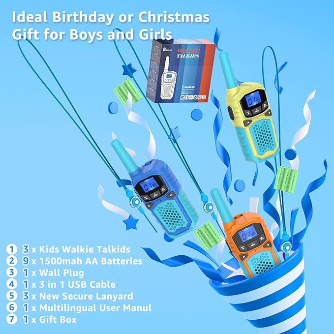 - 【Make a Top Wishlist Gift for Boys and Girls】: The kid's walkie-talkie design is colorful and comes with gift boxes suitable for our children or friends. Great gifts for Christmas, birthdays and Easter, get the best communication experience for children's indoor and outdoor adventures