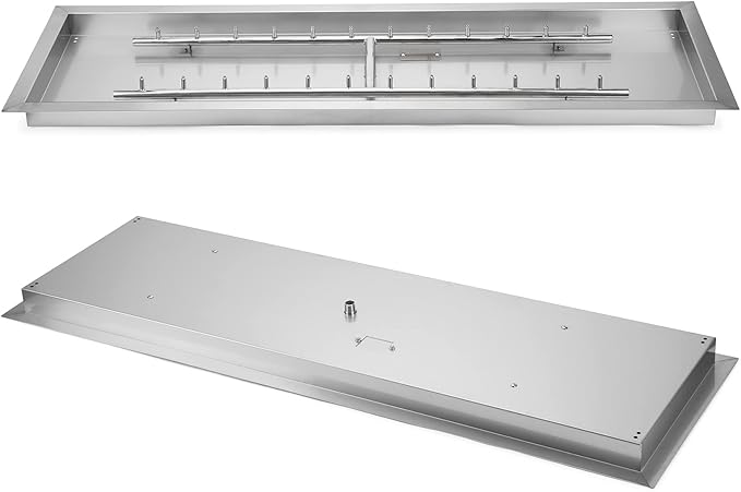 - Specification - Inside: 48 x 14 inch; Outside: 50.5 x 16.5 inch; Depth: 2 inch; Gas inlet size: Male 1/2 inch; Includes a extra mounting plate for optional igniter (igniter not included); Uses approximately 80 pounds of Fire glass.