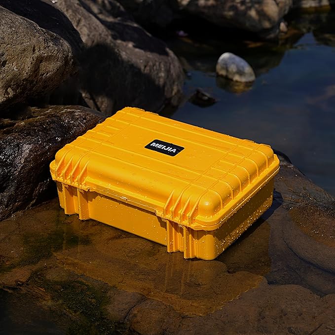 MEIJIA Portable Waterproof Hard Camera Case, Dry Case with Customizable Fit Foam, Protection for camera, drones,telescopes,18.5 x14.06x6.93inches(Yellow)
