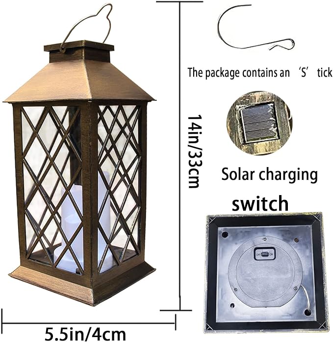 - 【easy to use】Each candle lantern is equipped with an "S" hook, so you can not only put it on the tabletop, but also hang it on a shepherds hook.this beautifully crafted solar powered lanternPerfect for garden