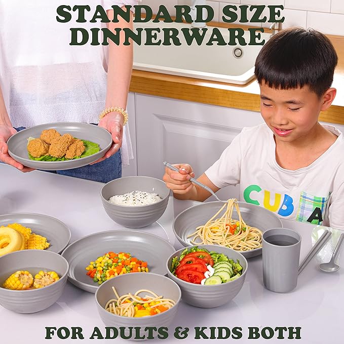 Wheatstraw Dinnerware Set For 4 - Dishwasher Microwave Plates For Heating Food - Unbreakable Wheat Straw Plates And Bowls sets - Replace Plastic Dinnerware Set - Camping Dishes Set