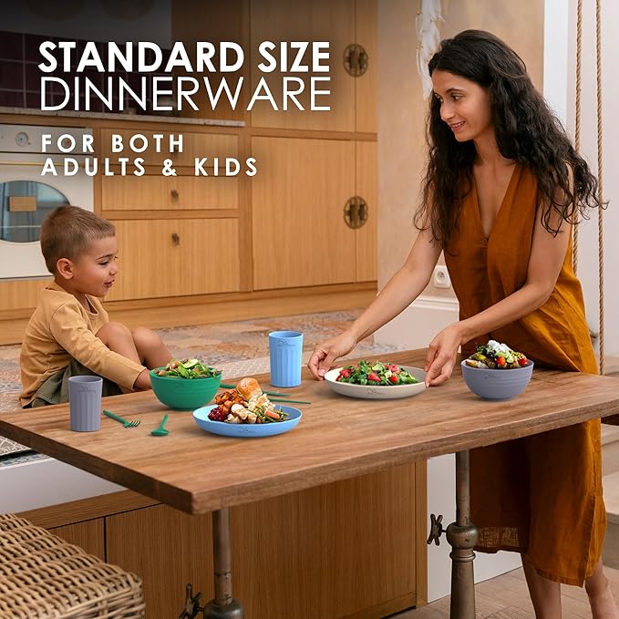 Wheatstraw Dinnerware Set for 4 - Camping Dishes & Utensils - Microwavable Plates - Alternate To Plastic Plates And Bowls - Camping Kitchen Set - Rv Dinnerware - Wheat Straw Dorm Dishes