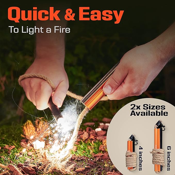 - ULTIMATE FIRE-STARTER TOOL – No need to buy a separate ferrocerium rod, striker, tinder wick, and bellow because this fire kit includes everything you need to create a safe, controlled fire.
