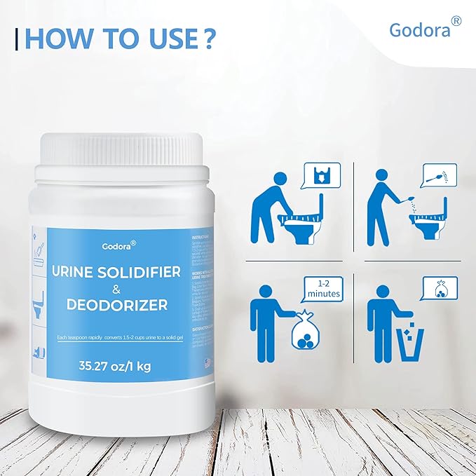 Godora ECO-Friendly Poo Urine Gel Powder with Spoon, Fast-Absorbing Camping Toilet Chemicals, Rapidly Biodegradable Eco Gel for Portable Toilet, for Outdoor Portable Bedpans & Emergencies