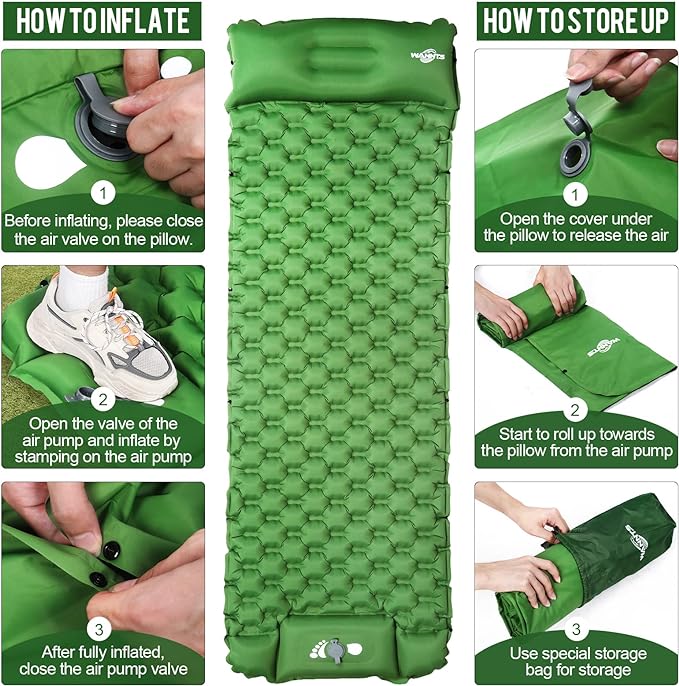 WANNTS Sleeping Pad, Ultralight Inflatable Sleeping Pad for Camping, Built-in Pump, Ultimate for Camping, Hiking - Airpad, Carry Bag, Repair Kit - Compact & Lightweight Camping Pad(Green)