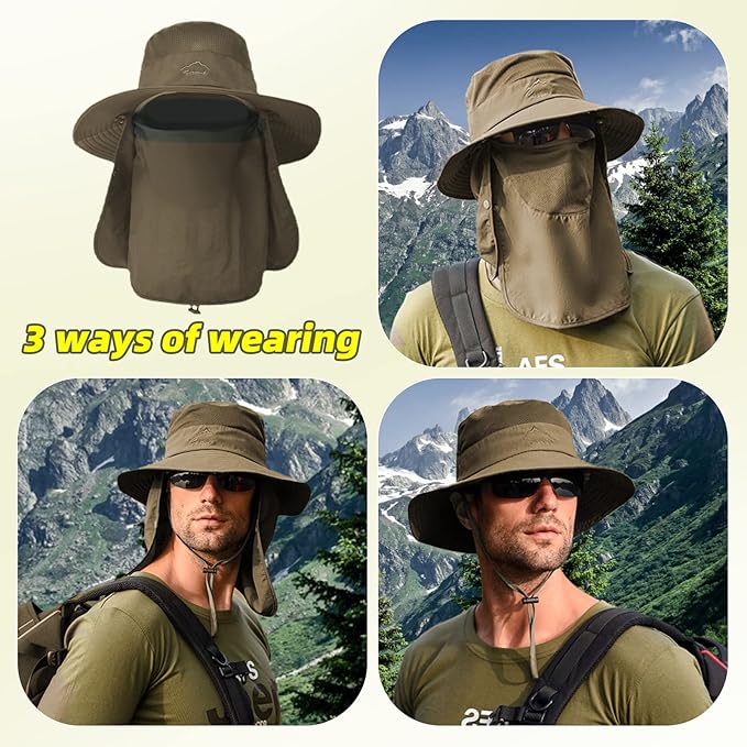 Fishing Hat for Men Sun Protection Hat with Removable Mesh Face Neck Flap Cover Windproof Strap for Men and Women