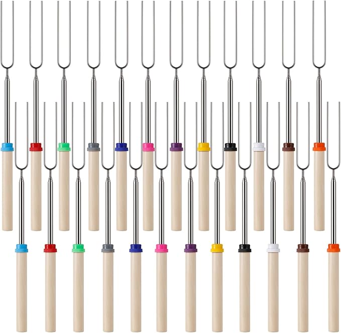 24 PCS Marshmallow Roasting Sticks, Telescoping Smores Sticks for Open Fire Pit, 32 Inch Long Marshmallow Toasting Barbecue Forks Smores Skewers for Campfire Camping Hotdog Hot Dog Bonfire Grill