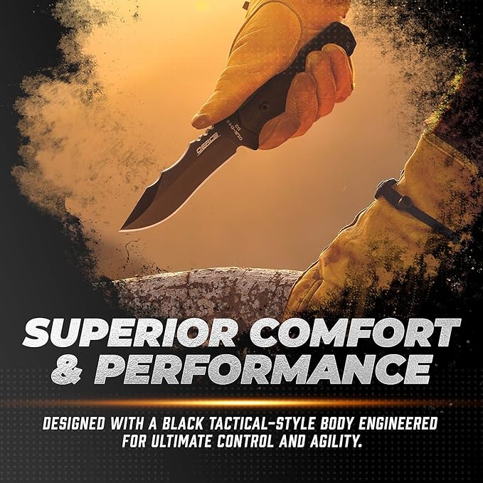 - ERGONOMIC G10 HANDLE Black G10 handle with deep finger groove provides a secure, non-slip grip. Engineered for comfort, control, and long-term use in any weather or terrain.
