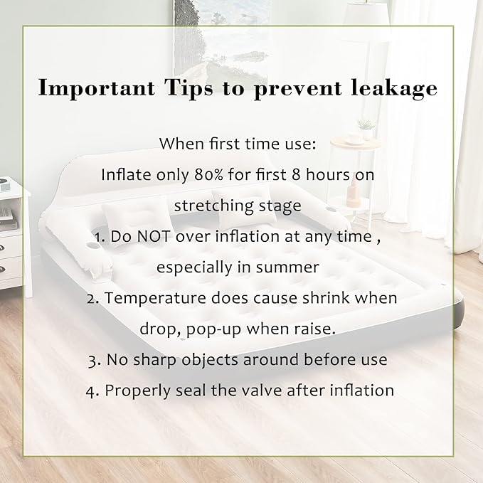 - [SKIN-FRIENDLY]: The queen size air mattress is made of soft velvet flocking and high-quality PVC. Honeycomb structure is more ergonomic.