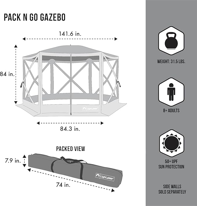 - Portable and Innovative: This camping gazebo helps keep you comfortable and protected when outdoors! Guy line ropes and stakes are included for added stability and security along with a zippered carry bag for easy travel wherever your adventure takes you.