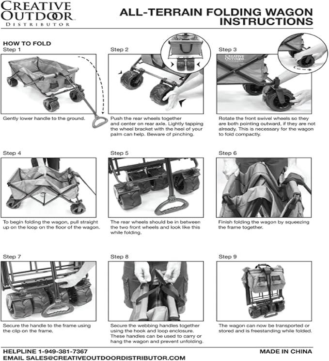 - STORAGE: Simple set up - folds up to fit in most car trunks (no assembly required). Fold the wagon by one pull on the toggle. Comes with travel/storage sleeve.