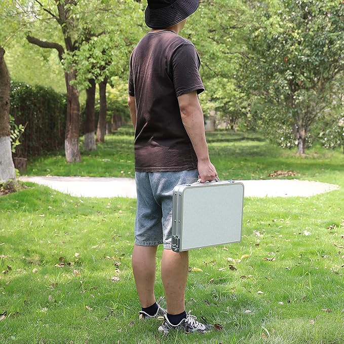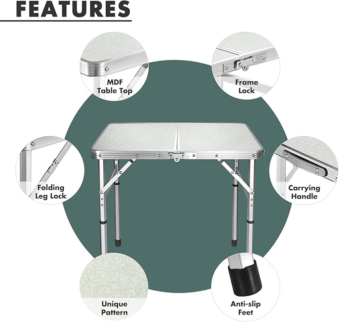 - Easy Set-Up & Take Down: Easily install the portable aluminum table in seconds, no tools are required. Fold out the small foldable table, insert the extended legs, lock the legs with lever locks, and lock the tabletop with side locks. Quick folding is also possible with the side lock when disassembling