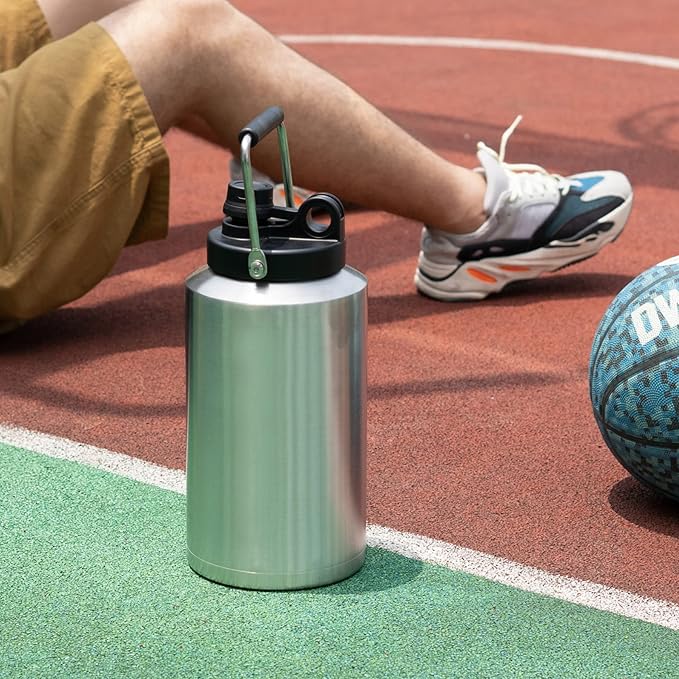- ๐งVACUUM INSULATED: Double layer vacuum insulated kettle, keeps the liquids icy for up to 48 hours or piping hot for up to 24 hours.This gallon water bottle is made of Powder-coat sweat-free technology, bottle grabbing becomes easy in time after strenuous exercise.
