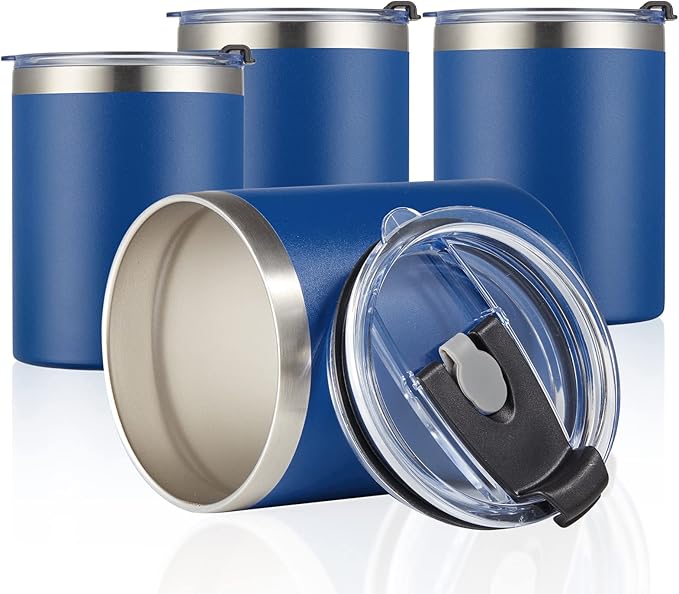 MEWAY 12 oz Lowball, Tumbler Stainless Steel Double Wall Vacuum Insulated Mug with Straw and Lid, Cleaning Brush ,Durable Powder Coated Insulated Coffee Cup for Cold & Hot Drinks (Navy, 12 pack)