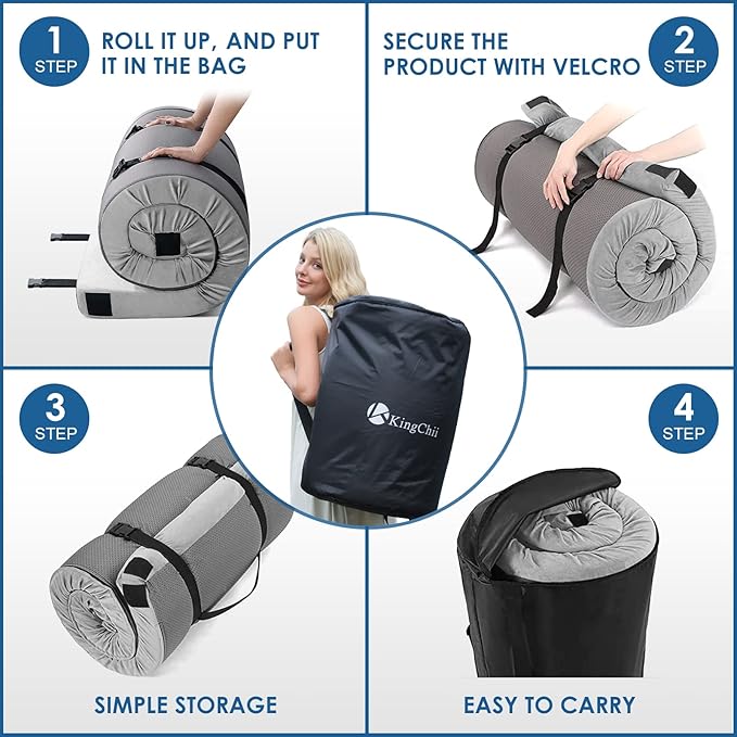 - 【Versatile & Portable】: Includes a sturdy carry bag with straps for easy rolling and storage. Ideal for hiking, tent camping, road trips(for SUV/RV/Van/Truck/Camper) as a temporary mattress, offering greater comfort than inflatable options. Also suitable as a guest bed for sleepover, floor mat, cot mattress or tatami mattress.