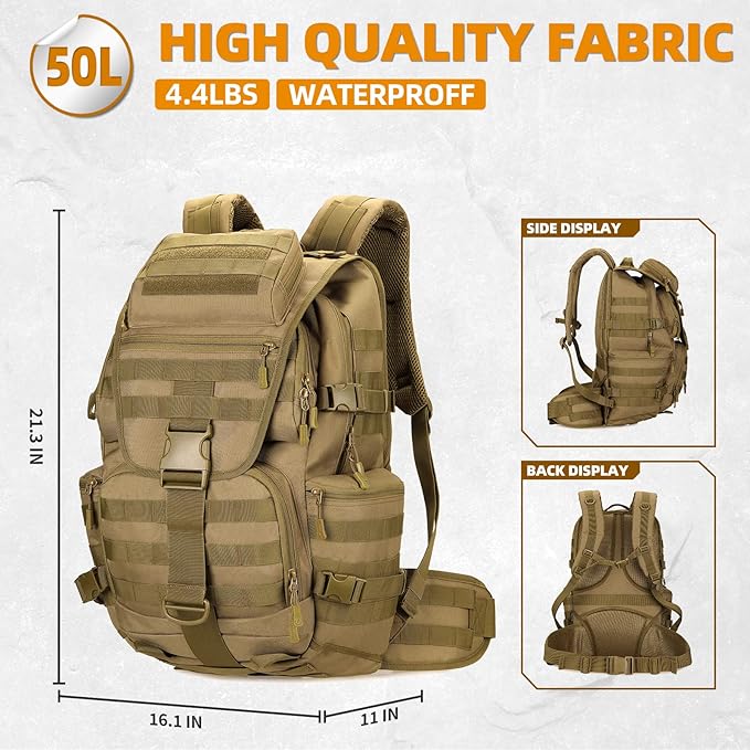 50L Military Tactical Backpack Hiking Waterproof Backpack Large Military Pack 3 Day Assault Pack Molle Bag Rucksack