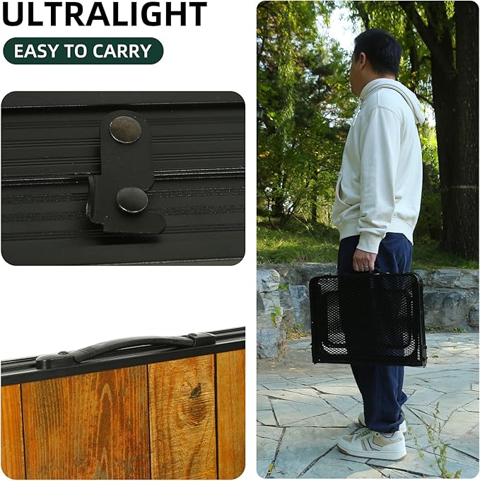 - WIDE USAGE: This folding table is perfect for 4-6 adults in most of daily occasions. You can easily take it to anywhere, especially suitable for outdoor activities such as camping, Grill, hiking, backpacking, picnic, fishing, beach, as well as indoor use