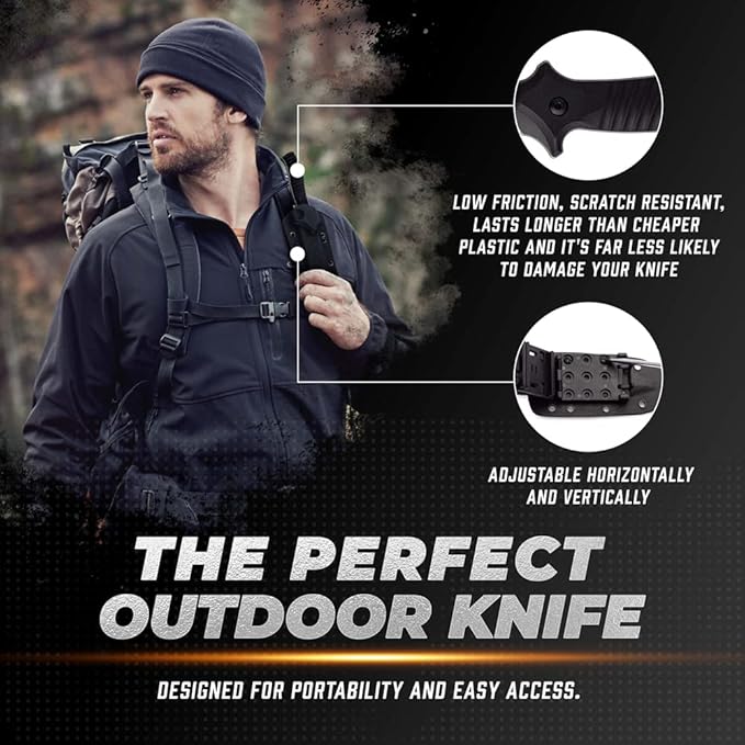 - Tactical Kydex Sheath – Multiple Carry Options Comes with a high-strength Kydex sheath and adjustable belt clip. Supports both vertical and horizontal carry for quick access in the field.