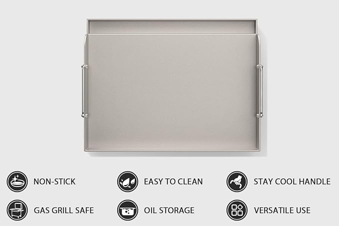 - Enhanced Features: 1. Upgraded Thickness: Prevents bending or warping during prolonged use. 2. Reinforced Support Ridges: Ensure stability and uniform heat distribution, eliminating hot spots and warping issues. 3. Detachable Handles: Convenient side handles make it easy to lift, carry, or store. 4. Built-In Grease Trough: Collects drippings to prevent flare-ups and makes cleanup effortless. 5. Polished Edges: Safe, smooth edges eliminate the risk of scratches during use