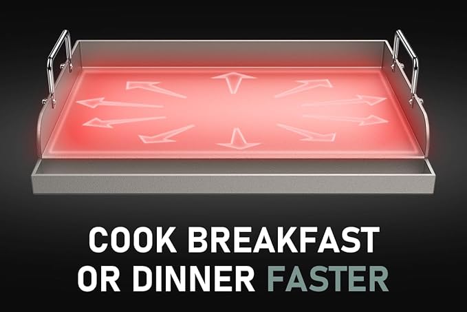 - Versatile Cooking for Every Meal: Turn your grill into a professional-grade outdoor kitchen with this cast iron griddle. From fluffy pancakes to sizzling steaks, it’s perfect for breakfast, lunch, and dinner. Grill bacon, eggs, burgers, seafood, veggies, and more with ease—your culinary creativity has no limits