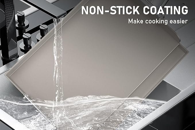 - Safe, Non-Toxic, and Effortless Cleaning: Cook with confidence knowing our coating is completely free harmful chemicals. This eco-friendly, non-toxic surface ensures safe and healthy meals for your family, even at high temperatures. The advanced nonstick finish allows food to slide off effortlessly, reducing the need for excess oil. Cleanup is quick and easy—just wipe it down, and you’re ready for your next grilling session