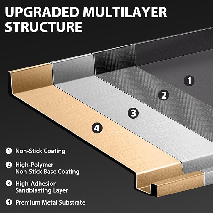 - PREMIUM MATERIAL: Made of Nonstick Coating Metal to ensure long-lasting, heavy duty, not eay deform and warp, heat resistant, non stick, easy to clean. Nonstick Material make cleaning effortless, zero-burden!