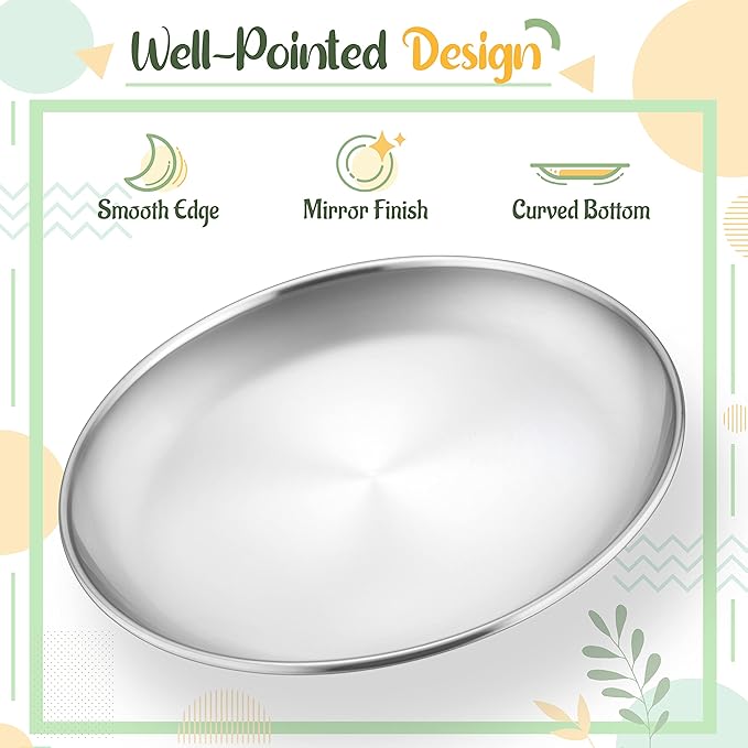 - 【SOLID STRUCTURE】Stainless steel toddler plates have sturdy construction, shatterproof and reusable to serve kids well for years, It’s a great substitute for plastic and paper plates, Great for the people who has high environmentally-conscious