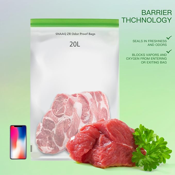 - 【KEEP FOODS FRESH】The SNAAQ ZR Odor Proof Storage Bags prevent air-sensitive foods from getting stale. Keep your meats, vegetables, fruits and breads freshly stored to lengthen the food’s shelf life, and keep open barrier bag packages covered to prevent the food from going stale or spilling out.