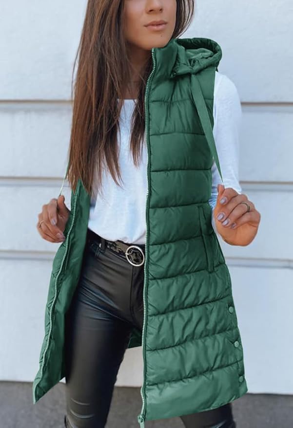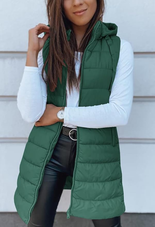 Veatzaer Women Long Vest Solid Color Sleeveless Hood Winter Puffer Vest Outwear