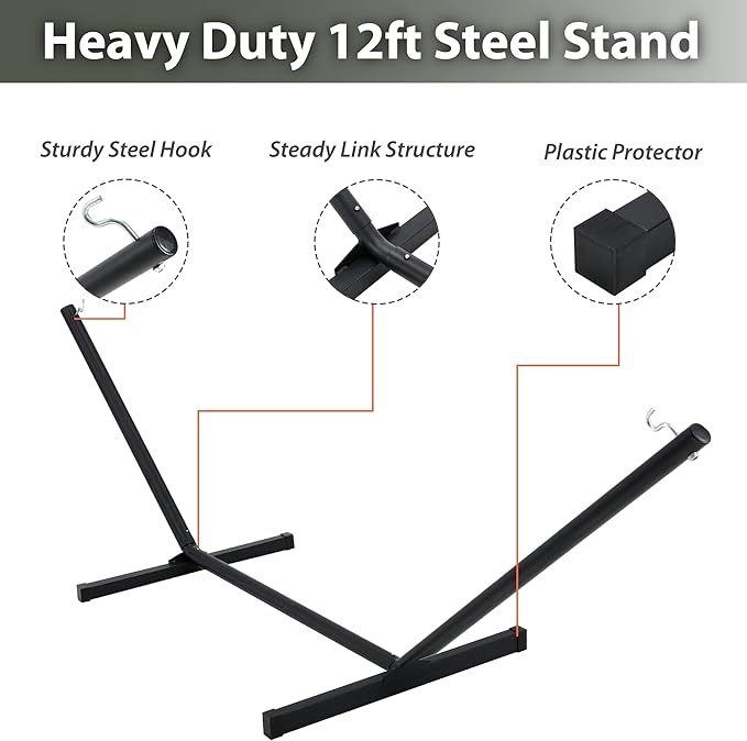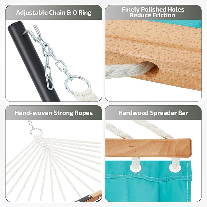 - 【Comfortable & Durable Design】Hammock with quality & coated steel stand, hand-woven strong ropes, double-layer quilted polyester fabric with poly fiber filling is durable to safely support a maximum capacity of 480 pounds. A detachable large soft pillow offers superior comfort when using.