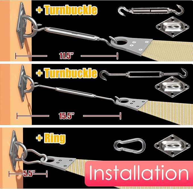 - ★【INSTALLATION GUIDE】: Installation hardware kits are required and sold separately, each D-ring will require one cable rope (DO NOT use nylon ropes, they break easily!!). Connect the other ends of cables to existing poles, trees or wall with shade sail hardware kits, high quality ColourTree hardware kits and cables are strongly recommended for best performance and appearance.