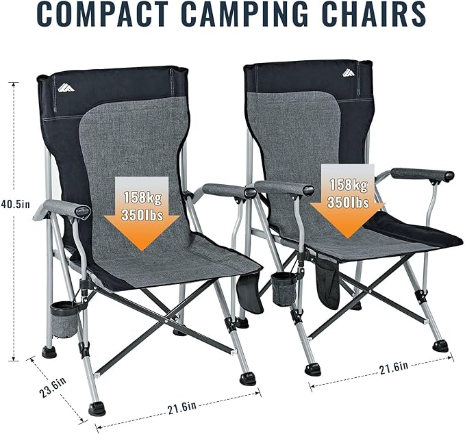 - Comfortable High-Back Design: The folding camping chairs features a 26"/66cm high - back. Made of soft fabric with padded armrests, they offers a super-comfortable sitting experience