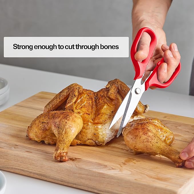 - Ultimate Kitchen Tool: Misen's professional-grade red scissors are not just any regular tool - they redefine versatility in the kitchen landscape. They can tackle any job in the kitchen or around the house. Easily debone an entire chicken, snip fresh herbs, slice up a pizza, or even just use them to open up your Amazon packages. There's a million uses for these around the kitchen and house.